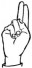 На ћирилици написано ИГЊАТИЈЕ ШКРЕБИЋ састоји се из 15 слова [?]. Исписано ћириличном једноручном азбуком за глувонеме: